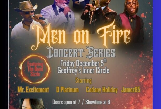 MEN ON FIRE featuring Mr. Excellent, D Platinum, Codany Holiday & James85 Doors Open at 7pm | $25 Per Person You won't want to miss ... -